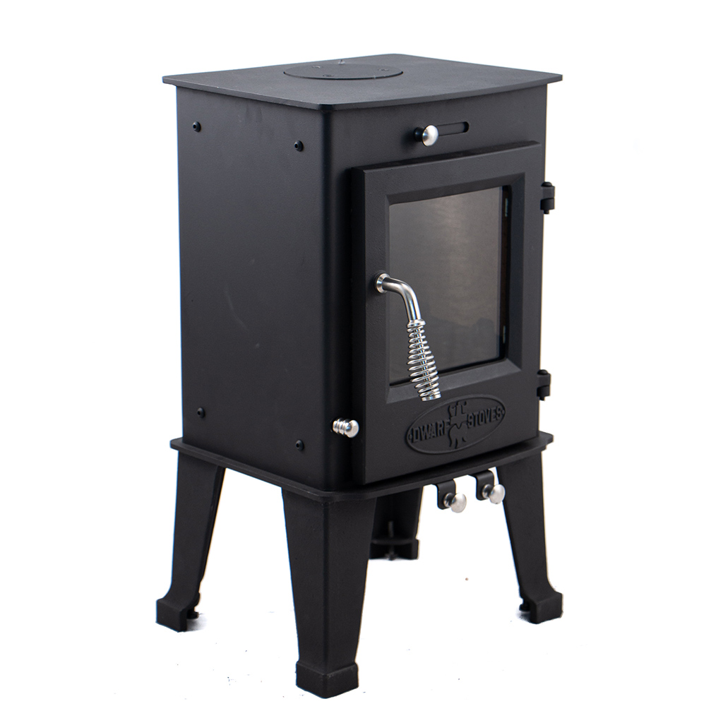The Dwarf 4kW is our medium sized small stove. It's a great fit for medium sized tiny spaces, and larger spaces in milder climates. Consider 5kW if poorly insulated or tall ceilings.